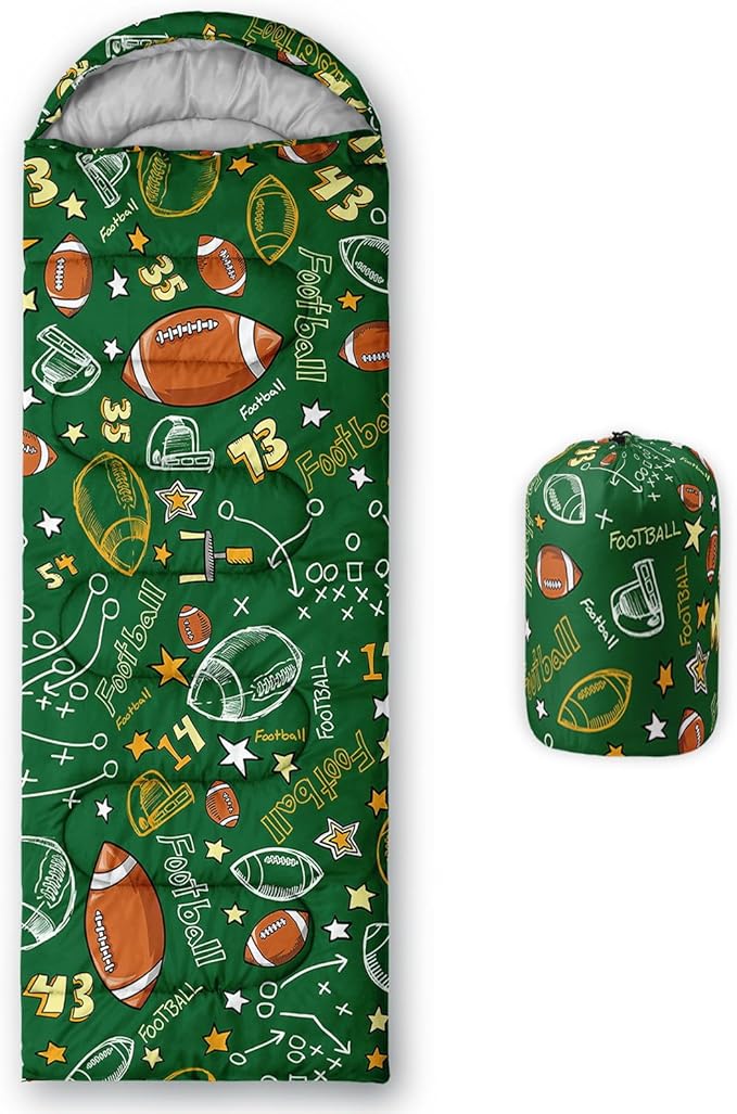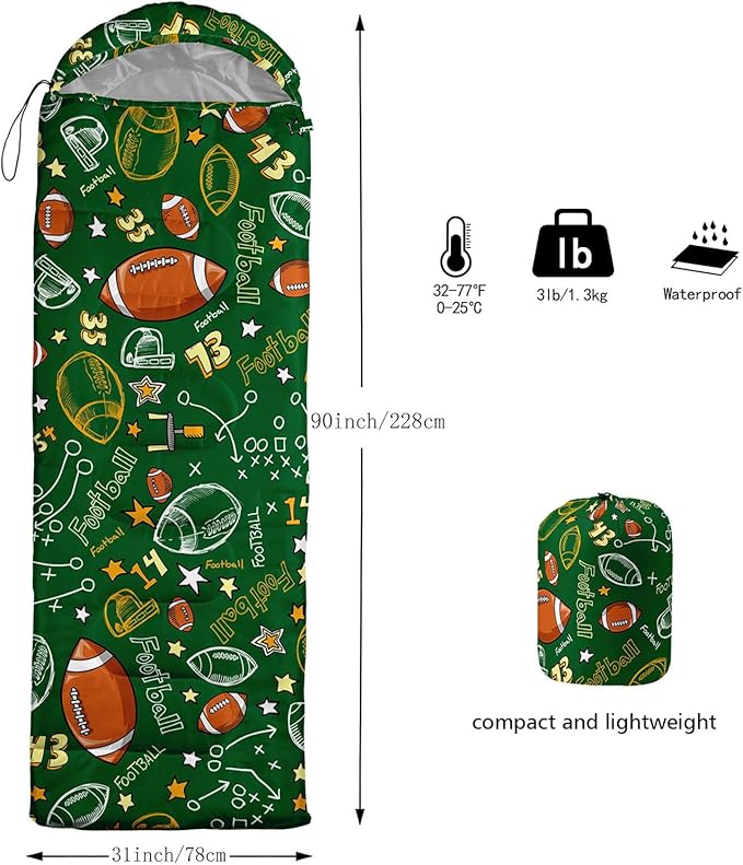 - SUITABLE:The sleeping bag can be used for 3 Seasons.SIZE:90.5"L x 31.5"W Suggenal extreme temperature: 41 ℉ -77 ℉.Applicable in a variety of scenarios,such as Travel camping pajamas party,It's very suitable for you to travel with your children.Half-circle hood with adjustable drawstring,which can keep you warm and prevent your humidity