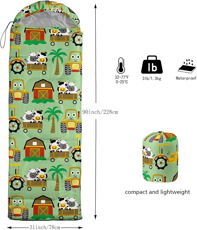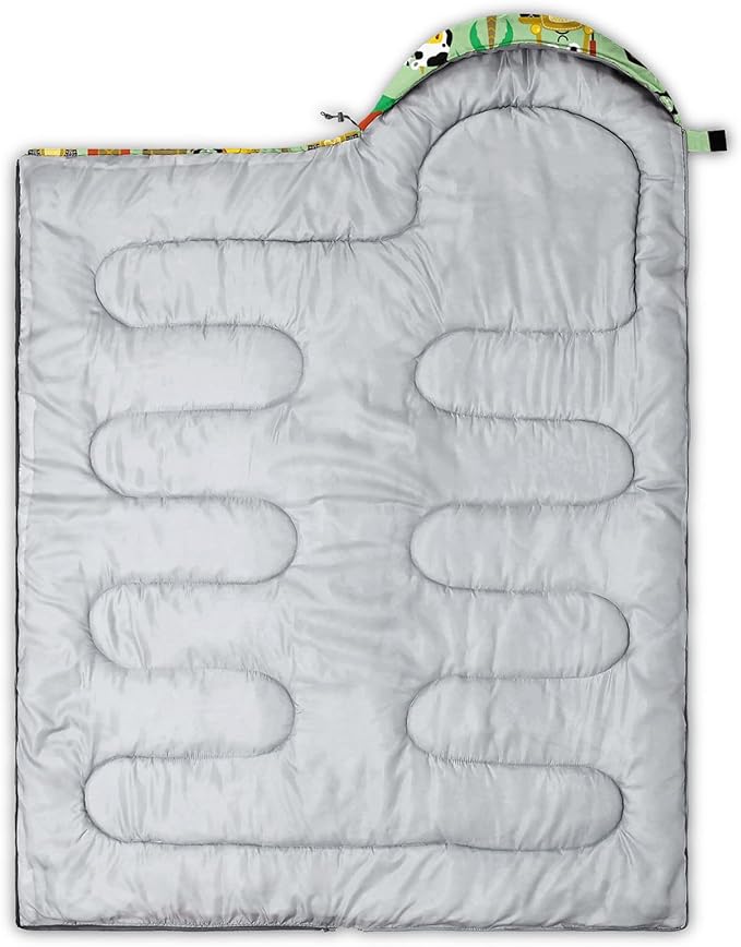 - SUITABLE:The sleeping bag can be used for 3 Seasons.SIZE:90.5"L x 31.5"W Suggenal extreme temperature: 41 ℉ -77 ℉.Applicable in a variety of scenarios,such as Travel camping pajamas party,It's very suitable for you to travel with your children.Half-circle hood with adjustable drawstring,which can keep you warm and prevent your humidity