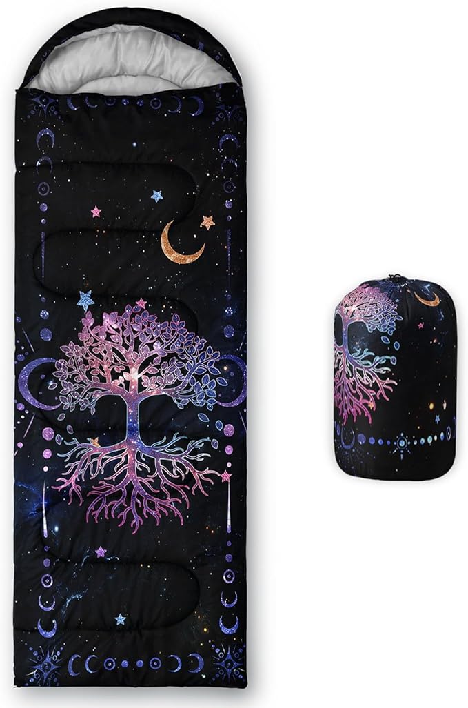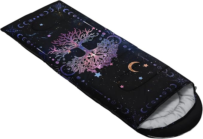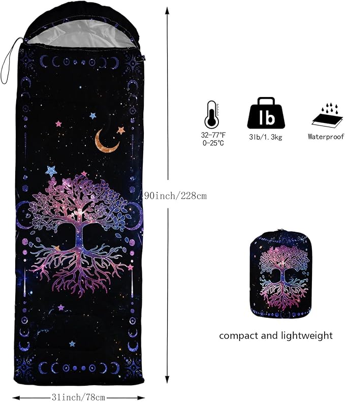 - SUITABLE:The sleeping bag can be used for 3 Seasons.SIZE:90.5"L x 31.5"W Suggenal extreme temperature: 41 ℉ -77 ℉.Applicable in a variety of scenarios,such as Travel camping pajamas party,It's very suitable for you to travel with your children.Half-circle hood with adjustable drawstring,which can keep you warm and prevent your humidity
