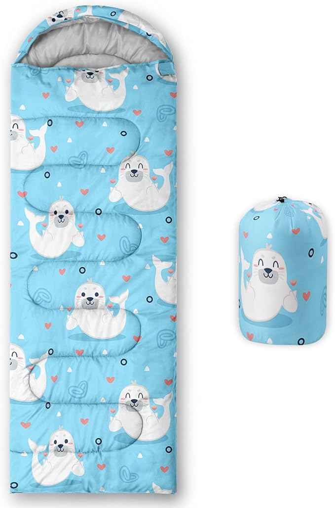 Kids Sleeping Bag for Boys Girls,Cute Puppy Print-Lightweight Warm Portable Outdoor Indoor-Waterproof Cold Weather Resistant Sleeping Bag for Camping Hiking