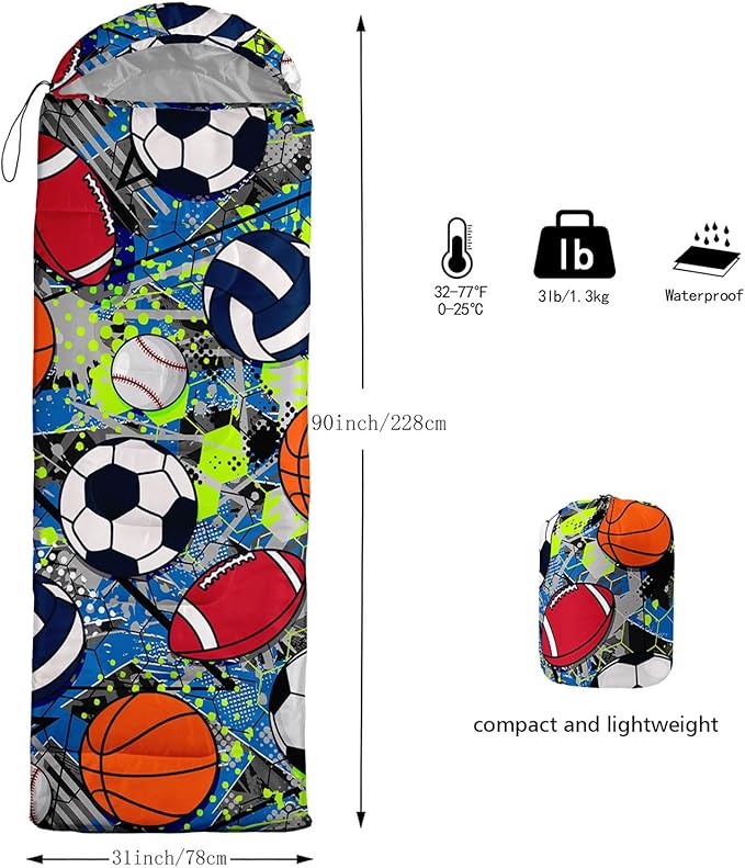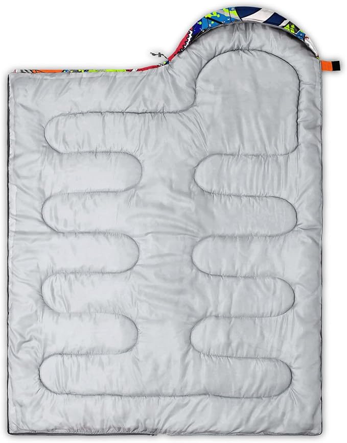 - SUITABLE:The sleeping bag can be used for 3 Seasons.SIZE:90.5"L x 31.5"W Suggenal extreme temperature: 41 ℉ -77 ℉.Applicable in a variety of scenarios,such as Travel camping pajamas party,It's very suitable for you to travel with your children.Half-circle hood with adjustable drawstring,which can keep you warm and prevent your humidity