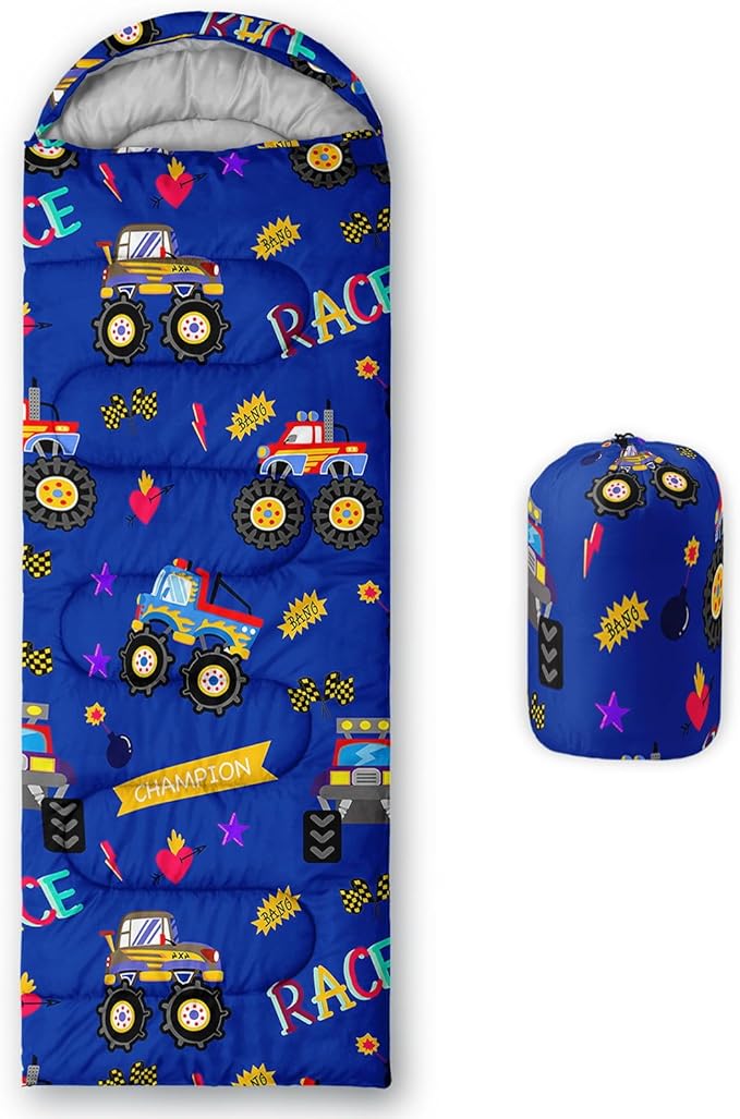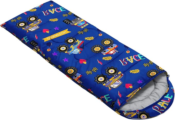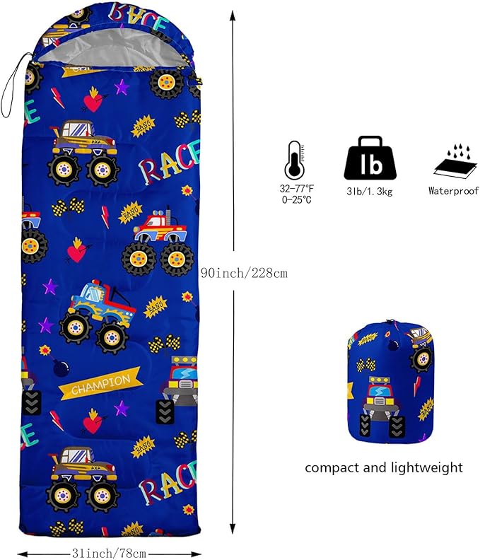 - SUITABLE:The sleeping bag can be used for 3 Seasons.SIZE:90.5"L x 31.5"W Suggenal extreme temperature: 41 ℉ -77 ℉.Applicable in a variety of scenarios,such as Travel camping pajamas party,It's very suitable for you to travel with your children.Half-circle hood with adjustable drawstring,which can keep you warm and prevent your humidity