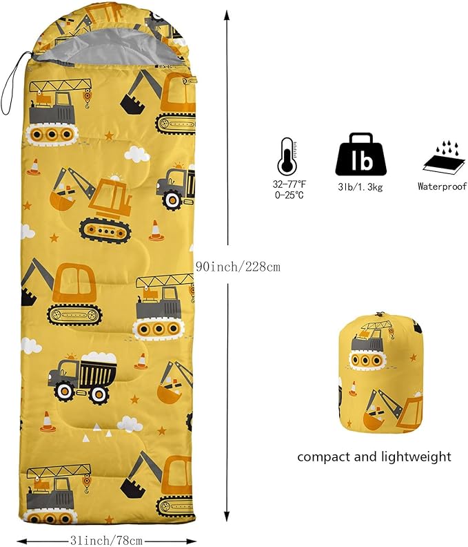 - SUITABLE:The sleeping bag can be used for 3 Seasons.SIZE:90.5"L x 31.5"W Suggenal extreme temperature: 41 ℉ -77 ℉.Applicable in a variety of scenarios,such as Travel camping pajamas party,It's very suitable for you to travel with your children.Half-circle hood with adjustable drawstring,which can keep you warm and prevent your humidity