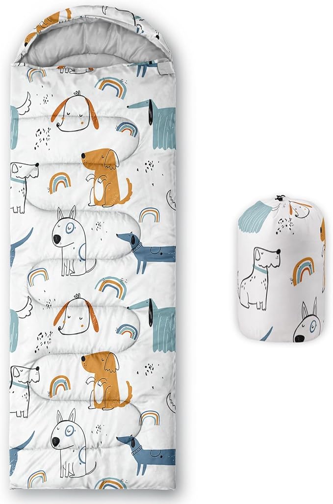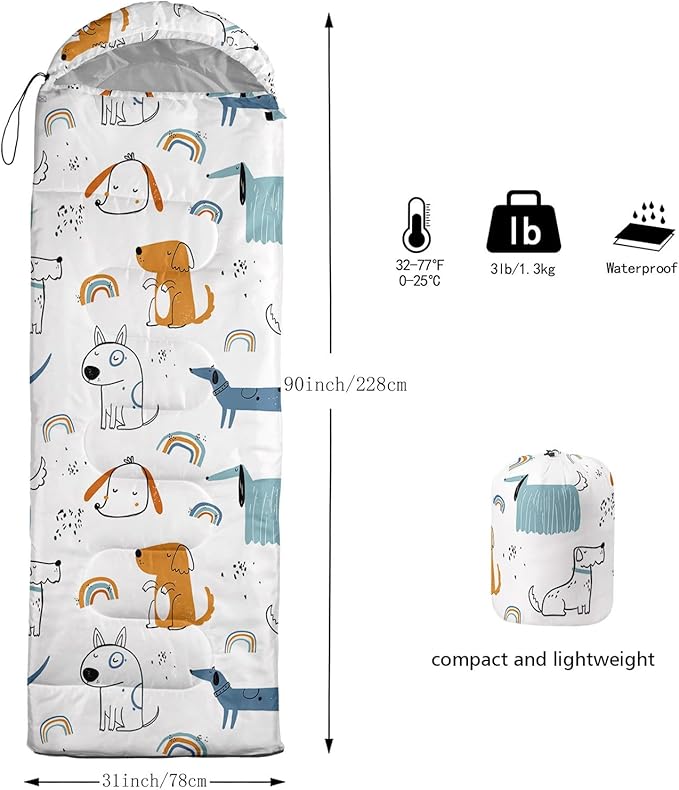 Kids Sleeping Bag for Boys Girls,Cute Puppy Print-Lightweight Warm Portable Outdoor Indoor-Waterproof Cold Weather Resistant Sleeping Bag for Camping Hiking