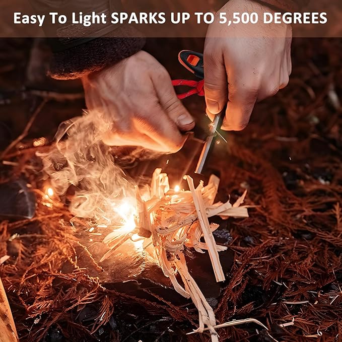 - 【POWERFUL FEATURES】:Easily ignites campfires, stoves, gasoline barbecues, and plant lint, adapts to a wide variety of fires; Uses a magnesium alloy containing 7 metals; Up to 20,000 strokes to ignite; Can produce sparks up to 3,000 degrees Celsius (5,500 degrees Fahrenheit); Produces a bright spark - can be used as an emergency signal; Normal use in rain and snow.
