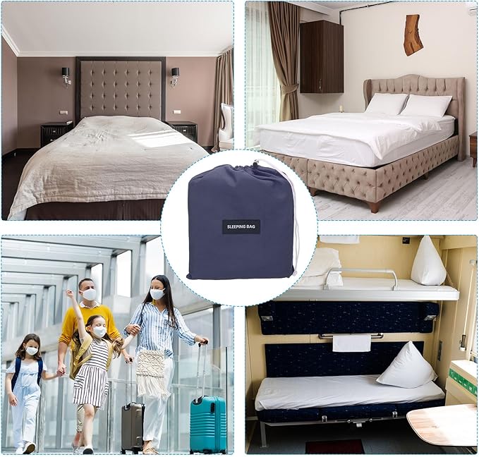 - Advantage: These travel sheets are made of ultra-fine polyester, soft, comfortable, colorfast, washable, breathable, and easily fold up and travel in carry bag.The integrated design of the pillow case blocks dirt. Snap buttons on both sides allow for easy entry and exit.With eye-mask and earplugs, can effectively block light and isolate external noise, helping you sleep comfortable