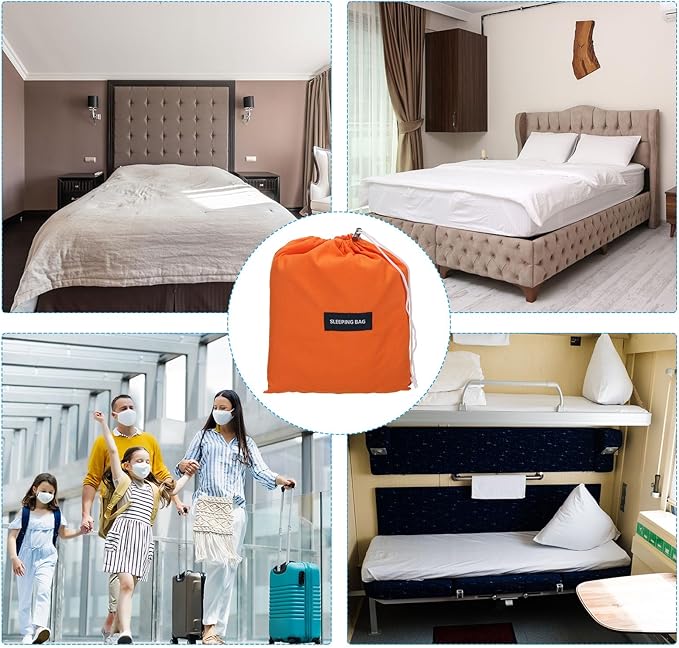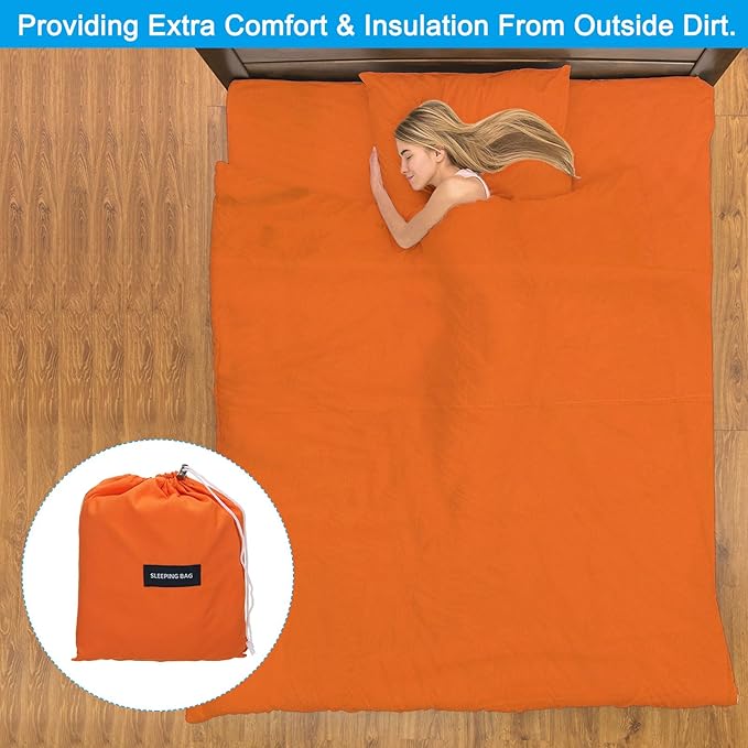 - Application: Our sleeping bag liner is an essential accessory for any camping or travel enthusiast. It is used as a lining for sleeping bags, providing extra comfort and insulation from outside dirt. Widely used in camping, traveling, hotel, train, etc. or as a replacement for bed covers at home.
