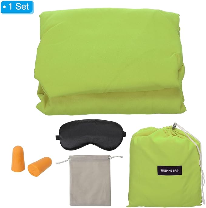 - Advantage: These travel sheets are made of ultra-fine polyester, soft, comfortable, colorfast, washable, breathable, and easily fold up and travel in carry bag.The integrated design of the pillow case blocks dirt. Snap buttons on both sides allow for easy entry and exit.With eye-mask and earplugs, can effectively block light and isolate external noise, helping you sleep comfortable