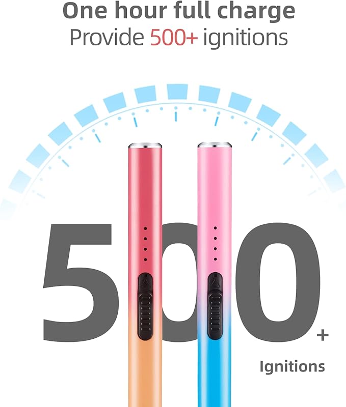 - 【Windproof And Flameless】:The electric lighter adopts plasma arc windproof and flameless technology,no flame,no butane, no trouble. The candle lighter is suitable for strong wind and damp environment, the electric candle lighter is an ideal lighting tool for you to use outdoors.Compared with other arc igniters,the noise is lower.