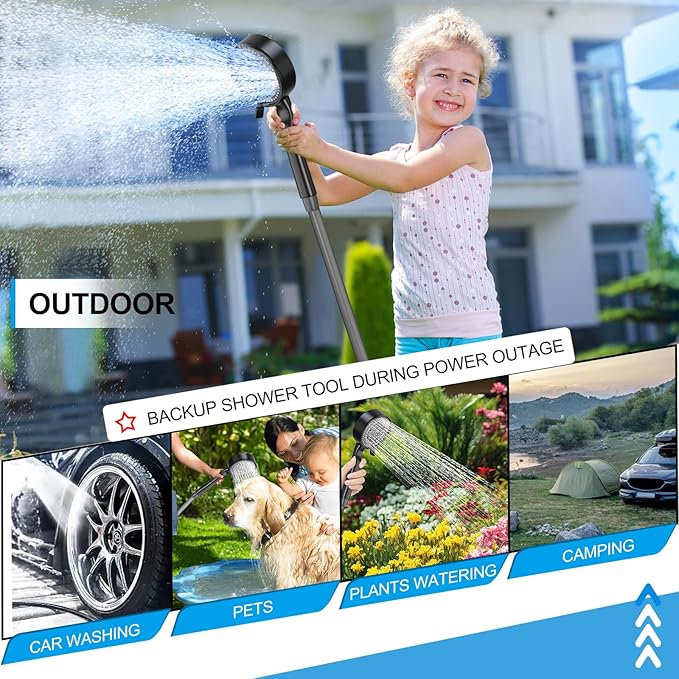 - STAY CLEAN: Transforms sink or bucket or a river or a lake of water into an instant shower stream, Extra long 5.9FT hose for easy movement, adjustable classic showerhead with 2.5L/min max water flow rate for a comfortable bathing