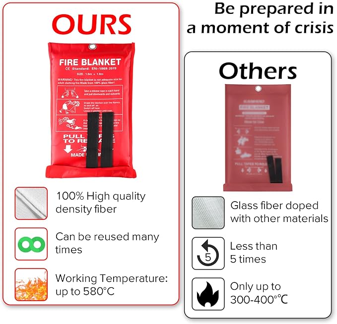 - 【Worry-Free Purchase】The fire blanket for home size is 39.3x39.3nch, don't let fires get out of hand - prepared fire blanket for home is a quick and easy solution for any unexpected flames, providing safety for you and your family. Customer satisfaction is the first, please contact us for any after-sales queries or concerns.