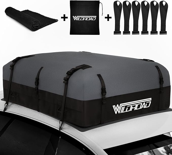 WILDROAD Rooftop Cargo Carrier - 25 Cubic Feet, 600D Ultra Anti-Tear Fabric, Waterproof Car Roof Bag with Soft-Shell, Anti-Slip Mat and 6 Door Hooks - Fits Cars with/Without Racks