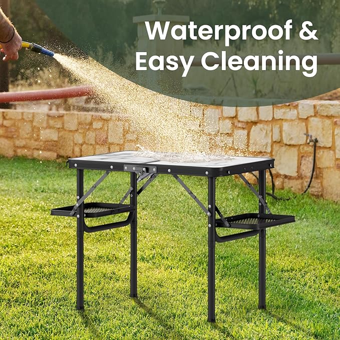 - Perfect Fathers Days Gift. All-purpose Camping Table with Extra Wings. Partitioned use, no more mess. You can also use it as a picnic table, beach table, patio table, bed table,etc. Just take one, you can have them all.