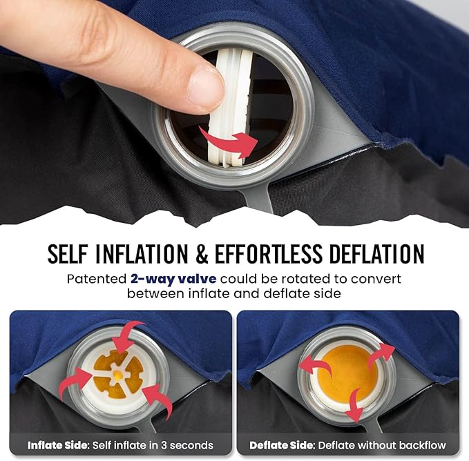 - 𝐒𝐞𝐥𝐟-𝐈𝐧𝐟𝐥𝐚𝐭𝐚𝐛𝐥𝐞? 𝐘𝐞𝐬! - No more struggling to inflate camp pillows with your mouth! Our inflatable travel pillow could self inflate rapidly in seconds thanks to the patented double sided valve which has never been used on air pillows before due to its high cost. But we still decided to go with it because it really makes inflating and deflating a breeze.