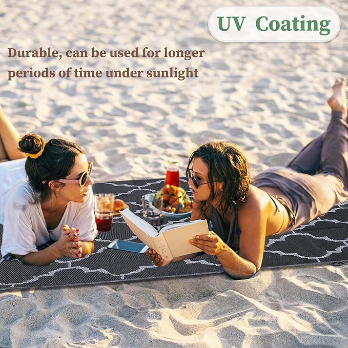 - UV Resistance: Our outdoor plastic reversible rugs have UV coating that can resist high temperatures and prevent damage caused by sunlight, such as fading and aging. Note: Due to different lighting conditions, the color of the rug may differ from the image. Using in the shade can increase the lifespan of outdoor rugs.
