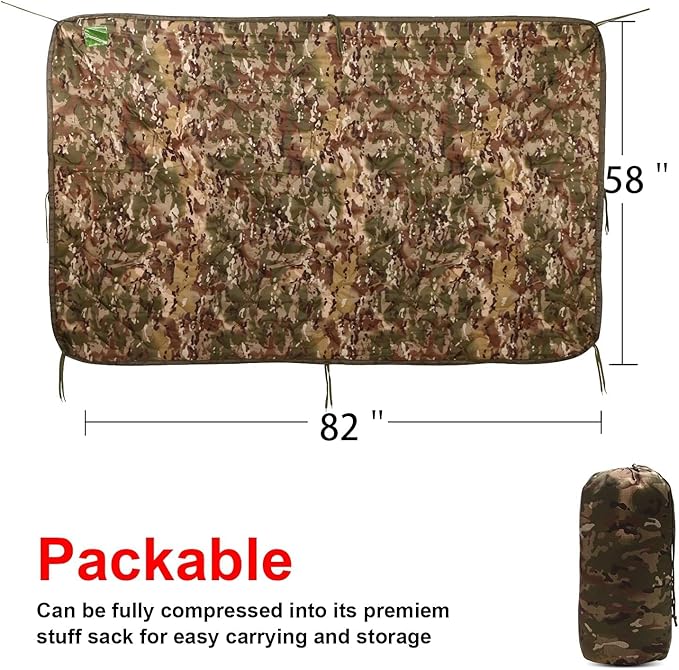 Military Woobie Blanket Thermal Insulated Poncho Liner Camping with Drawstring Carry Bag Waterproof for Outdoor Hiking