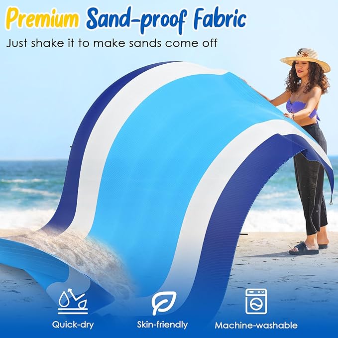 MoKo Sandproof Beach Blanket, Extra Large Beach Mat for Adults with 10 Stakes, Quick Drying Picnic Mat for Beach Travel Camping Hiking