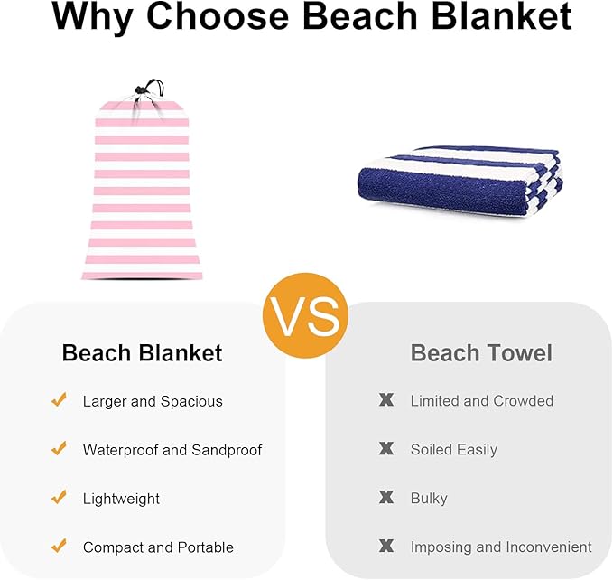 - Large Size for More Space: At 78 x 86 inch, the beach blanket offers large square feet of sand-free space, providing ample room for all your beach gear and family members. This extra large beach mat is better for spreading out and keeping your things off the sand.