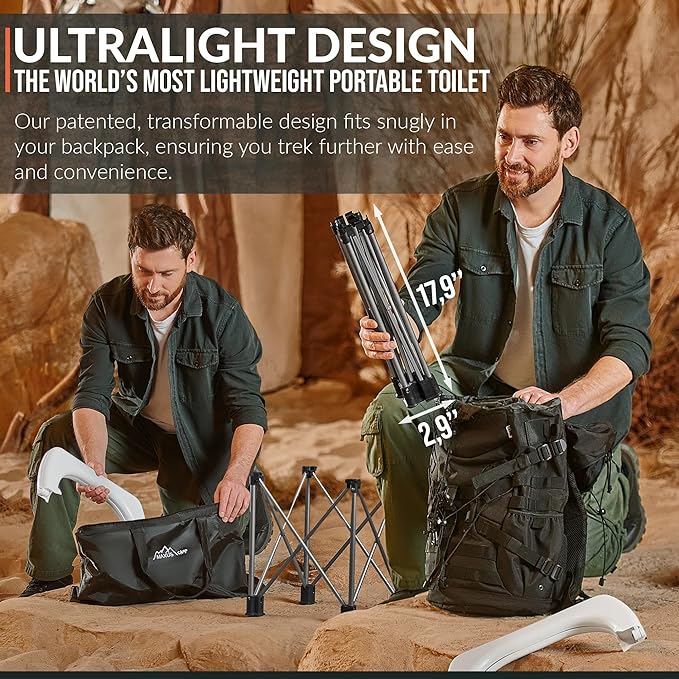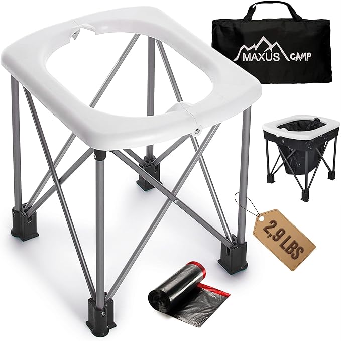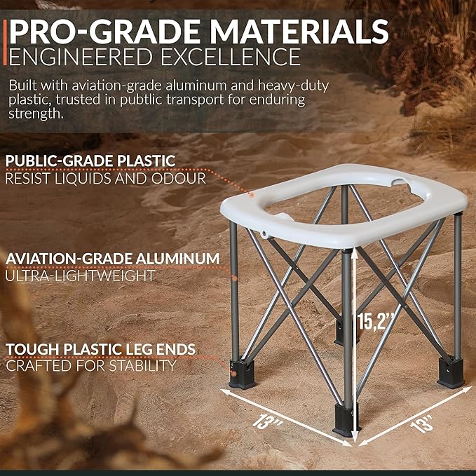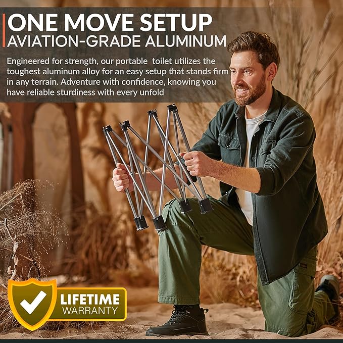 - 【Sturdy Aluminum Frame】 - This portable toilet for camping features an ultralight, aviation-grade aluminum frame that supports up to 350 lbs. The portable potty for adults on the go.