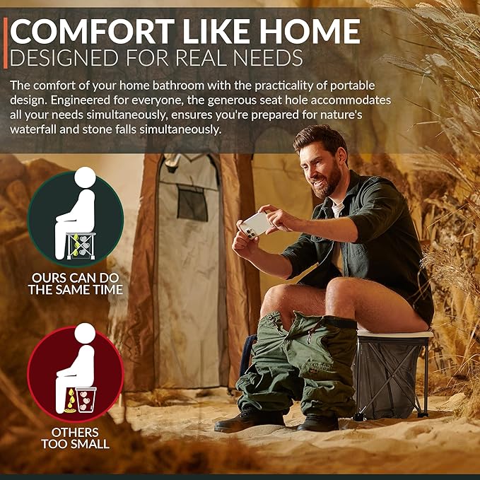 - 【Home-Like Comfort】 - Enjoy the comfort of a household toilet wherever your adventures take you with this portable travel toilet. The thoughtful design brings home-like ease to the outdoors.