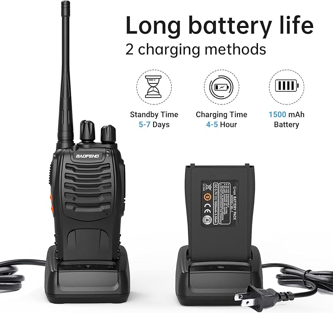 - 【Long distance communication walkie talkie】: The walkie-talkie can communicate with a distance of 1-3 miles in most cases. Larger distances can be reached in open spaces.