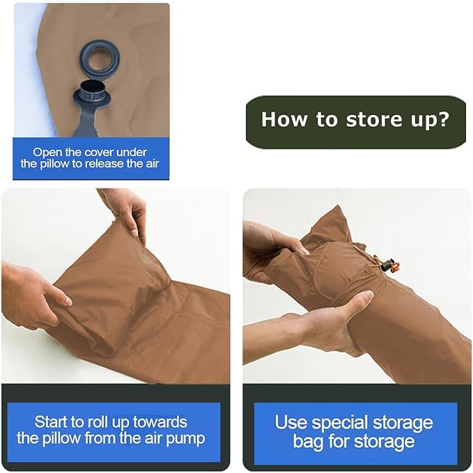 - 【Ultralight & Easy to Carry】The ultra-light sleeping pad weighs only 1.7 pounds, and it's just the size of a water bottle when deflated and folded, only 9*4*4 inches. With inbuilt pillow also saves you the trouble of carrying an extra pillow. It can easily fit in your backpack and take it with you. Perfect for hiking, camping, backpacking, traveling, climbing, hiking and other outdoor activities.