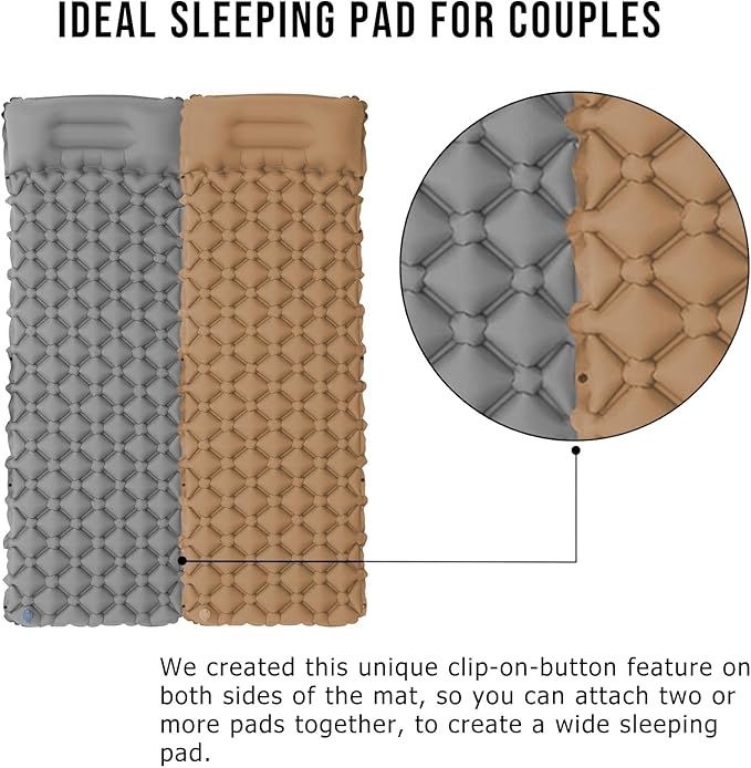 - 【Ideal Sleeping Pad For Couples 】Going on a trip with your lover?CXHSFNAL sleeping mat has your back! We created this unique clip-on-button feature on both sides of the mat, so you can attach two or more pads together, to create a wide sleeping pad and snuggle all night with your lover.