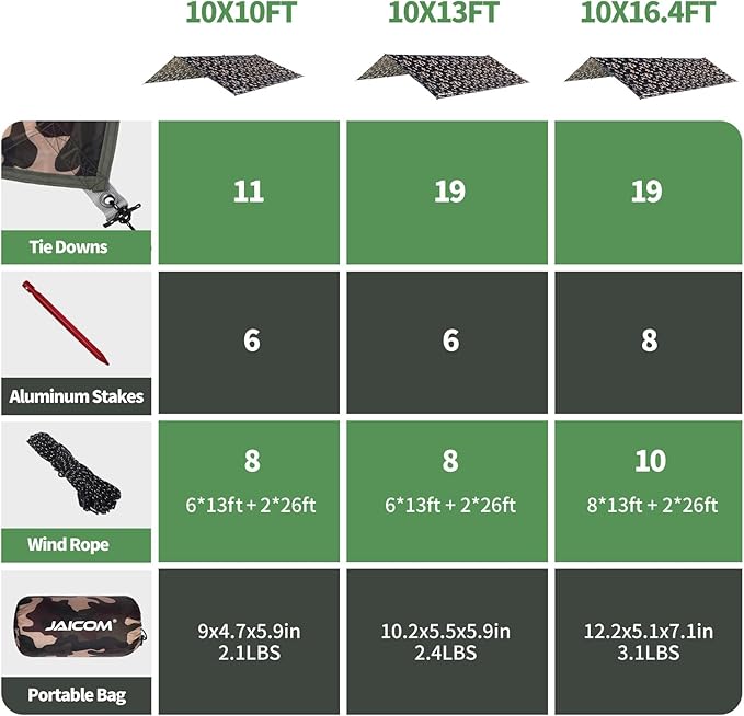 - Best protection: The JAICOM Camping Tarp is made from 210T tear-resistant polyester fabric that is highly abrasion resistant. The seams are all press-glued and the fabric has a waterproof coating, making our tarp highly waterproof. It gives you strong protection no matter how extreme the weather is