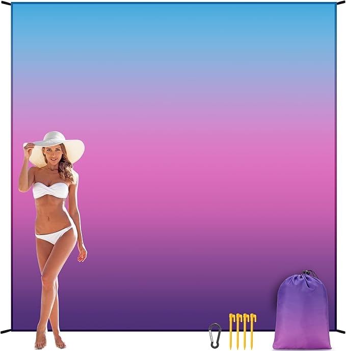 - 【4* SAND POCKETS & 4 *ANCHOR STAKES 】 There are 4 triangle sand pockets at the corners of the beach mat, so you can put sand or rocks in these sand pockets to keep the blanket on ground or you can use the stakes to nail it down