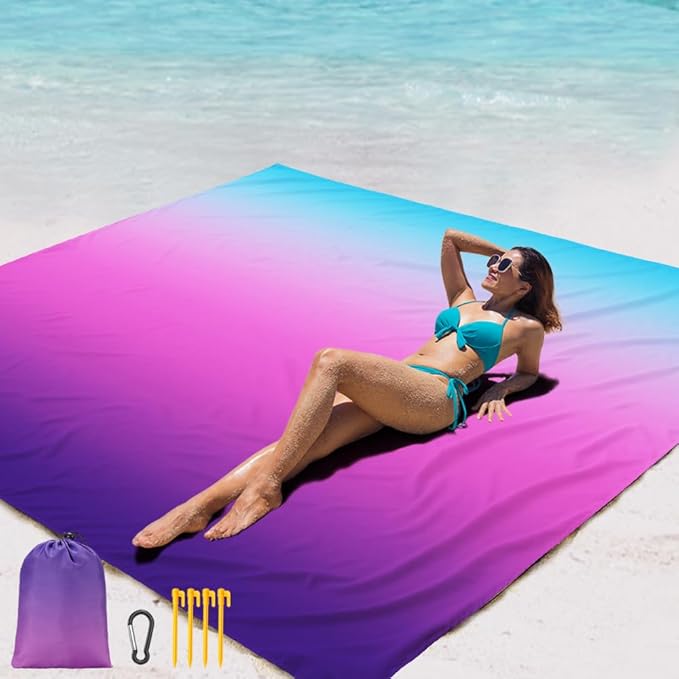 - 【OUTSIDE BEACH BLANKET】1 * Sand Proof Beach Mat;4 * Durable ABS Anchors Stakes; 1* Carabiner; 1 * CARRY BAG