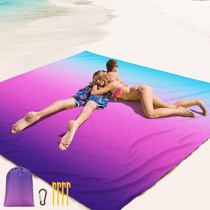 Beach Blanket Waterproof Sandproof Beach Mat 79" X 83" /10'x9'for 2-8 Adults Quick Drying Outdoor Picnic Mat Beach Accessories for Travel, Camping, Hiking