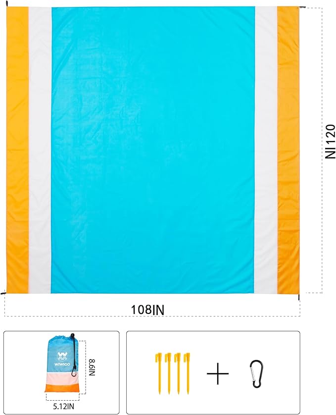 - 【LIGHTWEIGHT】1.65lb,120" X 108" sized beach/picnic blanket. It can folded into the 5.1”×7.5” carried bag, convenient to carry