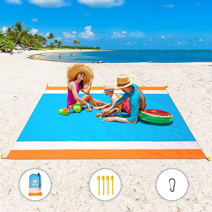 - 【OUTSIDE BEACH BLANKET】1 * Sand Proof Beach Mat;4 * Durable ABS Anchors Stakes; 1* Carabiner; 1 * CARRY BAG