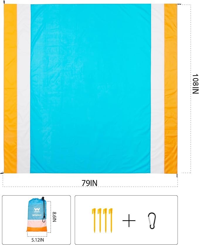 - 【LIGHTWEIGHT】1.08lb, 79" X 108"sized beach/picnic blanket. It can folded into the 5.1”×7.5” carried bag, convenient to carry