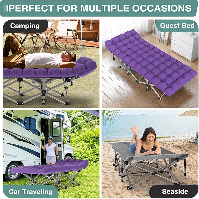- 【Quiet Sleep】Dream sweetly with ZENPETIO’s sleeping cot, your foundation for a restful night outdoors or indoors. The high-quality cotton pad soothes your skin, while the sturdy metal frame ensures no squeaks, perfect for outdoor camp, guest stay overnight, family visit, or anywhere when you need a portable cot/bed.