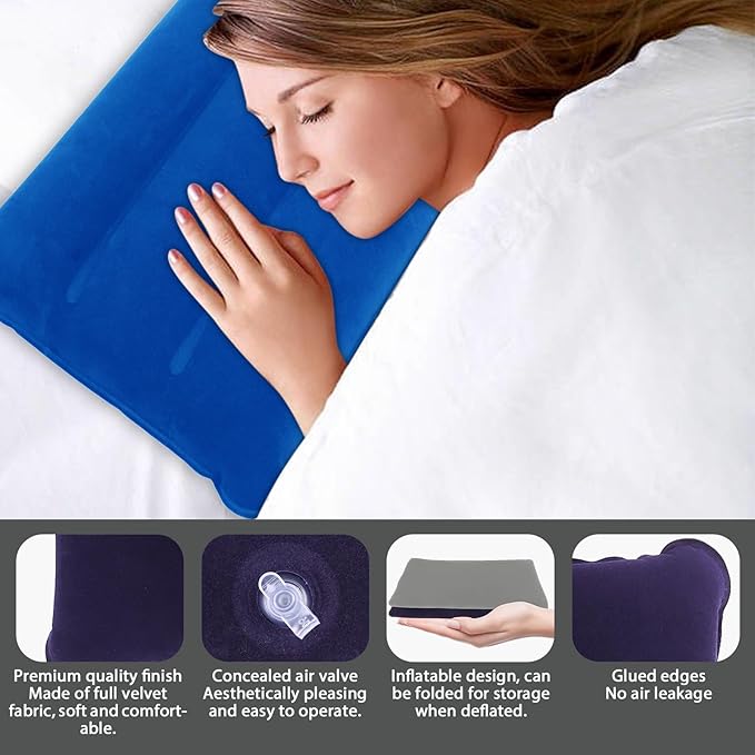 - 💪💦 𝐄𝐀𝐒𝐘 𝐓𝐎 𝐂𝐋𝐄𝐀𝐍: 💪💦 inflatable pillow for traveling designed for rugged outdoor environments! This inflatable pillow for camping is made with cleanliness in mind, and with a simple wipe or gentle rinse, it's ready for more trips and provides lasting comfort for countless adventures.