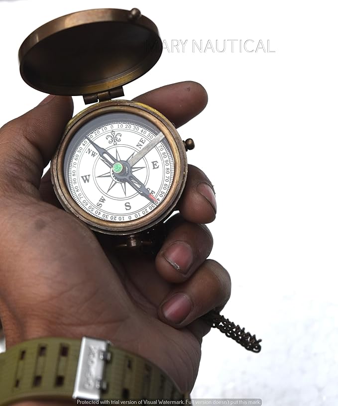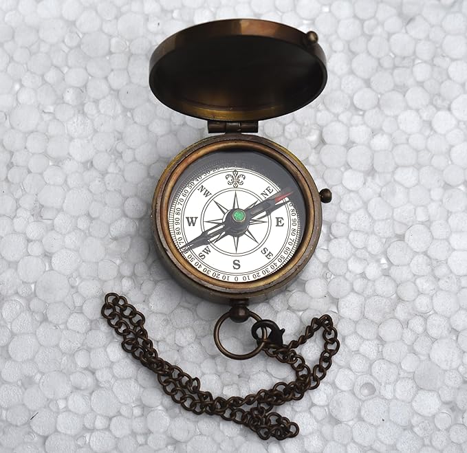 - ☀Fully functional for finding direction and location, constructed of brass. An antique style reproduction Navigational Magnetic Compass, perfect nautical decor for your desk, boat, or home. A truly impressive and unique gift perfect for any occasion. Handmade Compass with brass chain and Leather Storage Case Each compass is individually crafted..