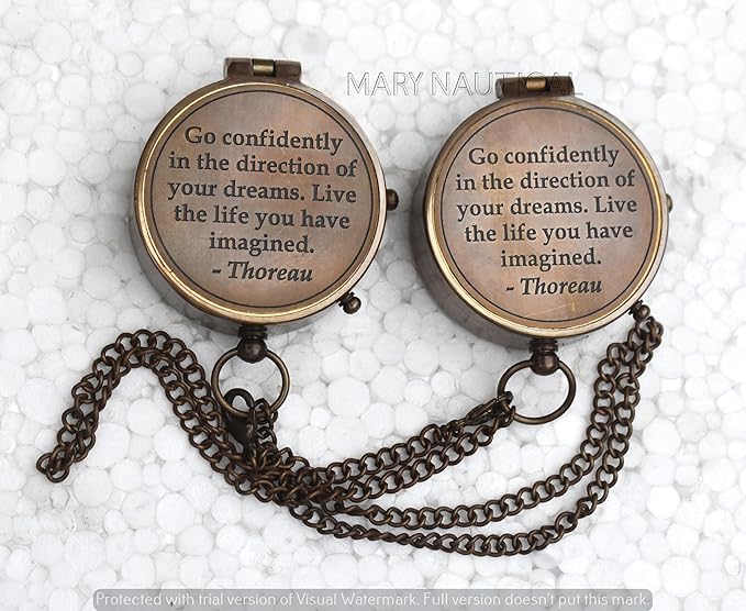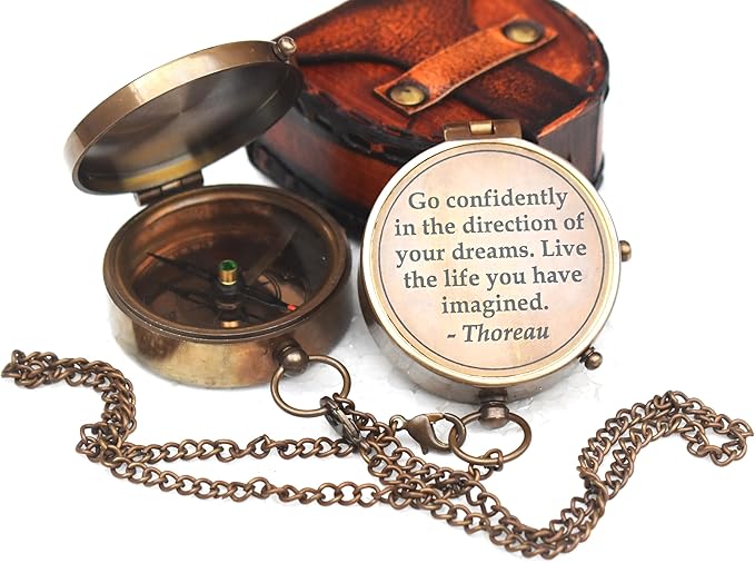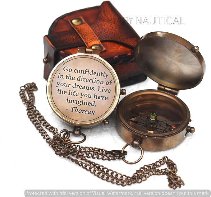 - ☀Solid Brass Compass Brass Finish With " Thoreau's Go Confidently Quote Engraved Compass With Leather case..