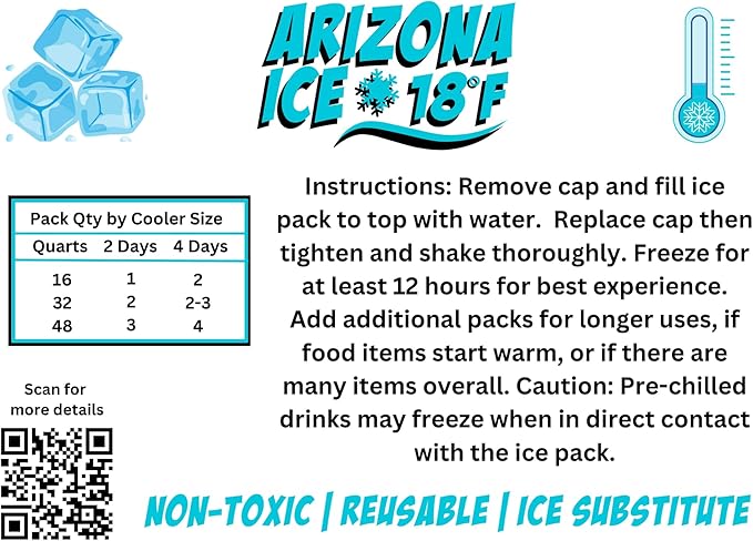 - COLDER THAN ICE – Due to our patent pending, non-toxic formula using phase change science AZ Ice is 14°F colder than ice and remains at that temperature for hours. Great for road trips.