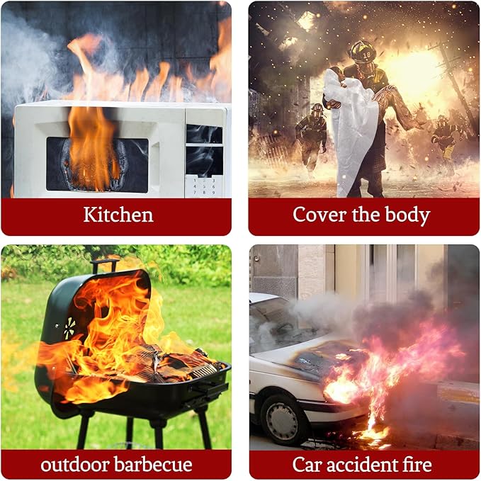 - 【WIDELY USE】 Emergency survival fire blankets ideal for the kitchen, fireplace, grill, car, RV, truck, household, office, home , lab. camping and so on.Moreover,Easily be stored in house or carried around.
