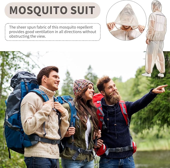 MIMI FUNN Mosquito Net Suit Ideal for Fishing, Hiking, Camping, Farming and Gardening (Beige), Large size