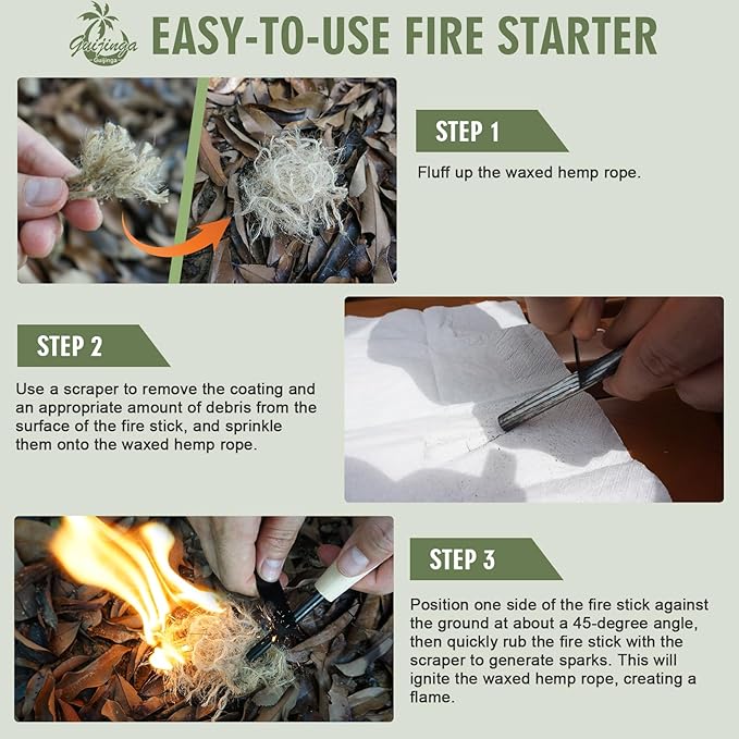 - 🔥【Easy to start a fire】:Contains 4 waxed hemp ropes, which are easily ignited by the sparks of the fire starter tool.