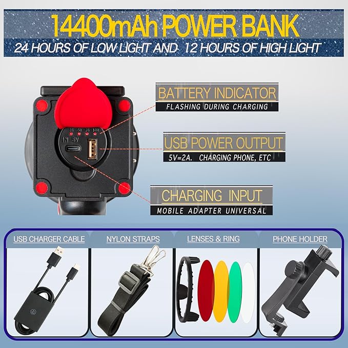 - High Lumen : Produces 120,000 lumens of bright white light for outdoor activities.