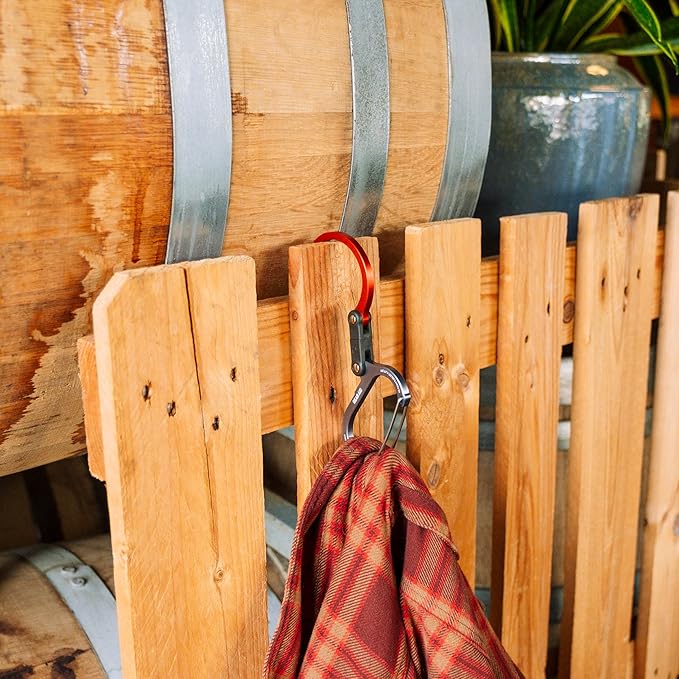 - COMPACT DESIGN: Hook and clip nest together when not in use. SIZE MEDIUM gate clearance 1.5", hook clearance 1.8", dimensions when open 3" x 3.75".