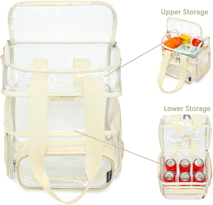 - ✿ Durable & Waterproof: This see through bag crafted from 0.4mm thick waterproof PVC with double zippers, our clear plastic lunchbag features a sturdy design. Reinforced seams and robust stitching ensure heightened durability, making it resistant to water splashes. Easy to clean with a simple wipe, this clear lunch tote bag is an ideal back-to-school gift for boys and girls.