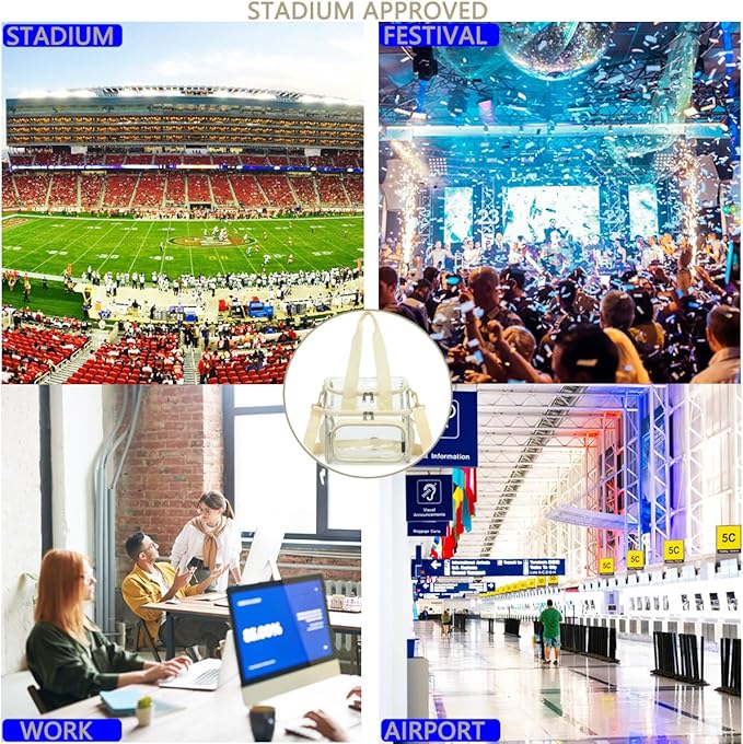- ✿ Stadium Approved: FlowFly clear tote bags for women and men fully comply with the clear bag policy, adhering to the size limit of 12x12x6 inches. This makes it a suitable choice for venues such as stadiums, concerts, sports events, festivals, supermarkets, and more, facilitating easy and fast passage through security lines.