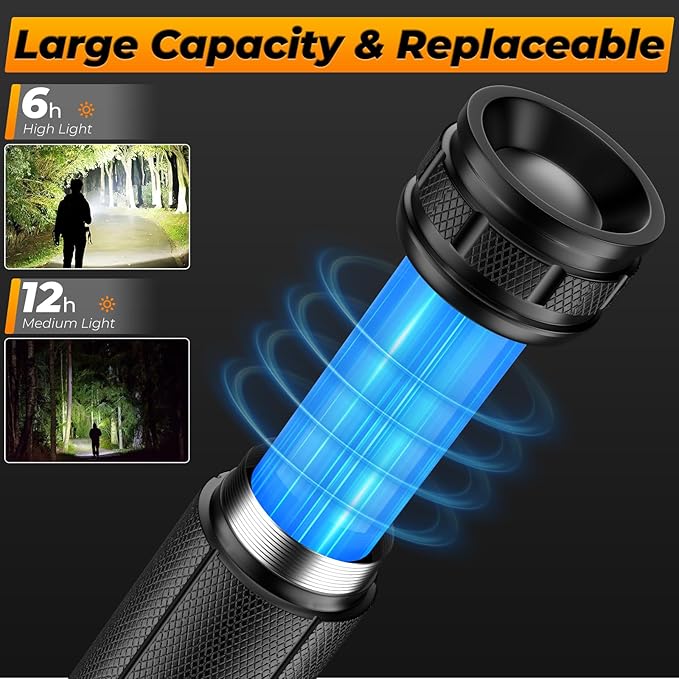 - 12 Hours - Also upgraded is ΒATTERY, where older ΒATTERIES typically last just 8 hours. We have improved this flashlight to make the flashlight ΒATTERY more enduring and can last up to 12 hours in low brightness mode, which will definitely meet your needs.
