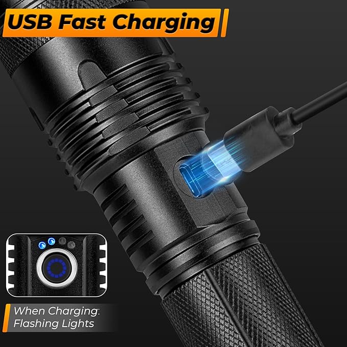 - Rechargeable - Of course, our flashlight is rechargeable (3-5h), you don't need to frequently replace the ΒATTERY, it is recommended that you charge the flashlight when the flashlight power remains 25%, so that the flashlight ΒATTERY can be better protected and extend the service life.