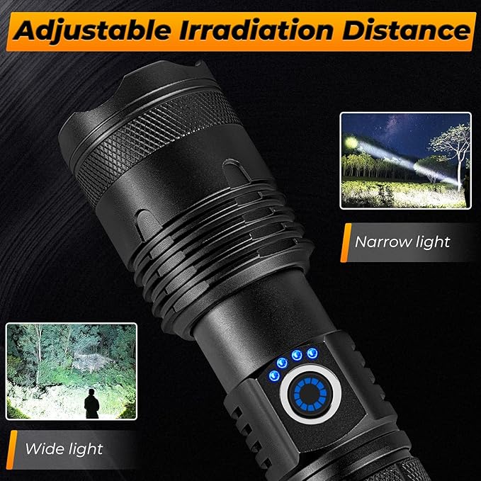 - 990000 High Lumens - The latest flashlight is small but powerful. The upgraded P50 wick is more powerful than the old version, the light is more stable and the output of lumens is up to 990,000, you will not be disappointed.