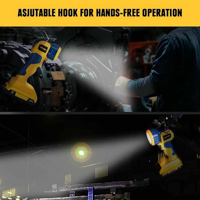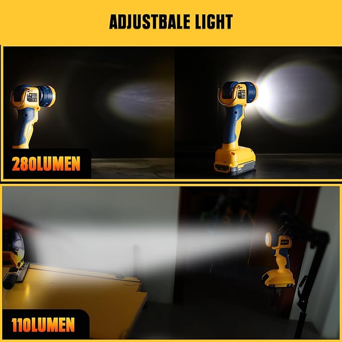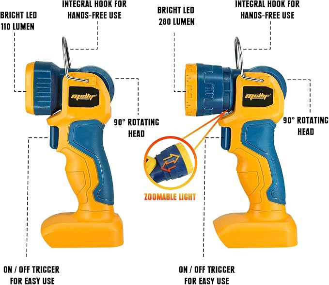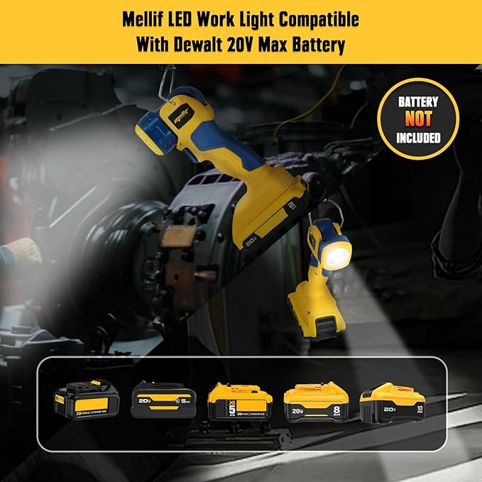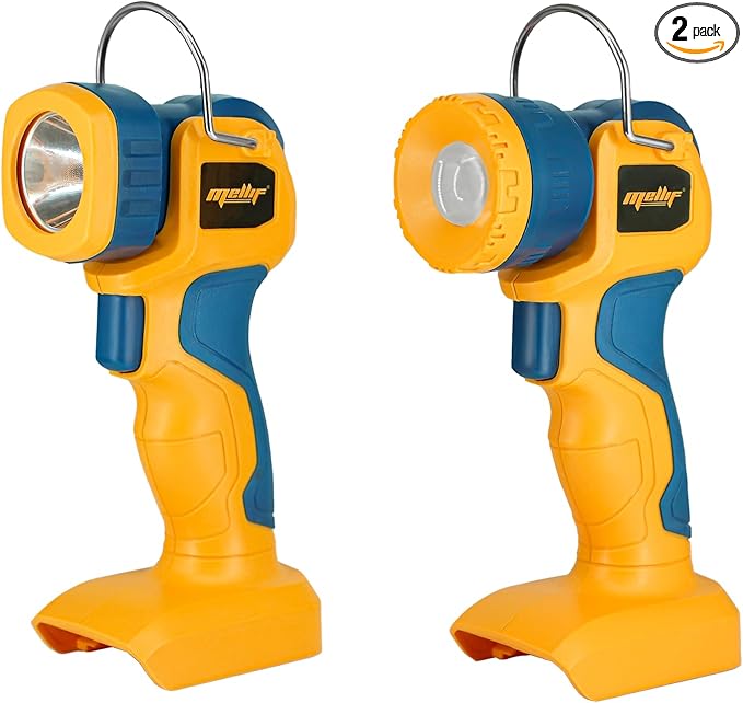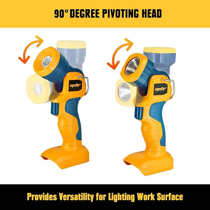 Mellif LED Work Light, Portable Flashlight for Dewalt 20V Max Battery (NOT Included), 90 Degree Pivoting Head, 110/280 Lumens of Brightness, Cordless, Zoomable, Jobsite (Yellow & Blue, L-Shape)